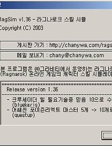 project/ragnarok7 "라그나로크 시뮬은 트로이 목마" 오해에 대한 입장 수년전부터 제 프로그램에서 바이러스나 트로이목마가 감지된다는 연락을 받아왔습니다. 그러나 지금까지는 모두 해당 백신 프로그램의 오류였습니다. 제 프로그램 중 하나는 저를 해킹범으로 모는 처지까지 되어 트로이 목마 툴이 아님을 해명한 후에 해당 프로그램 배포를 그만 둔 적도 있었습니다. 물론 저의 PC 환경이 100% 안전하다 장담할 수는 없으나, 이러한 백신 프로그램을 너무 맹신하시는 것도 주의하실 필요가 있습니다. 바이러스나 트로이 목마 등을 감지하는 백신 프로그램은 여러가지 검색방법이 있겠지만 온전한 바이러스 코드 덩어리를 모두 찾아내는 방식보다는 주로 유사한 패턴의 코드를 비교하는 방식으로 동작합니다. 얼마나 더 정확하게 찾아내느냐가 기술력이겠지요. 예전에 욕설필터링 시스템 같은걸 본적 있으실 겁니.. 2011. 9. 24. RagState 새버전에 대한 고민 침체된 한국 라그나로크 덕분에 나도 시들시들해진 것 같다. 물론 올해 바쁜 일이 많이 겹친 탓도 있고, 국내 유저가 엄청 줄어버린 탓도 있다. 그래서 해외사용자들도 쓰기 쉽도록 다국어버전을 재작업해보고 있다. 이른바 "RagState UE(Unified Edition)" 프로젝트!! 기존에는 아이템 이름에 한해서 영어와 일어를 지원하는 것에서, 이번에는 아이템 설명까지 포함하여 독일어, 러시아어, 터키어, 이탈리아어 정도까지 작업을 진행했다. 작업을 하고나니, 그 해외 서버들이 리뉴얼이 안됐기 때문에 그다지 실용성은 없을 것 같다는 생각이 든다. 그래도 새로운 도전이라는 측면에서 좋게 생각하지뭐... ^^ 최종 목적은 서버별로 존재하는 아이템이 다르고, 아이템 옵션도 다를 수 있게 하고, 리뉴얼되지 않은.. 2010. 9. 9. Ragnarok State Simulator 유저와 함께 만든 RagState 라그나로크 시뮬시리즈 중에 가장 심혈을 기울인 프로그램이라고 할까? 제작기간으로 따지자면 어설픈 실력으로 가장 처음에 시도했던 RagSkill이 가장 길었겠지만, 나름대로의 설계와 아이디어를 짜내고 공식을 구하려고 많은 노력을 기울인 작품이다. 하지만 내가 그렇게 투자한 노력보다는 많은 유저들이 동참해서 버그를 잡아나간 것이 더욱 빛을 발하게 해주었다고 생각한다. 편리한 것이 컨셉 처음에는 기존에 있던 스텟프로그램들의 자리를 대신하고자 했던 것은 아니다. 정확성 높게 짜여진 기존 프로그램과의 차별성을 고민하다가 가능한 익숙하고 편리하게 쓸 수 있게 하자라는 관점에서 현재의 RagState 프로그램을 고안하게 되었다. 특히나 라그나로크에는 여성유저가 상당히 많은데에 비해 .. 2009. 9. 23. Ragnarok Skill Simulator Ragnarok Online? 희야와 함께 즐겨하는 온라인 게임중 하나로, 판타지 만화 '라그나로크'를 모델로 하여 만든 라그나로크라는 온라인게임(MMORPG)이 있다. 세계 여러나라에서 로컬라이징 서비스를 하고 있을 정도로 아기자기하게 참 잘만들어진 게임이다. 3D 배경과 이펙트의 화려함과 2D 그래픽의 아기자기함이 어우러진 걸작 중의 하나라고 생각한다. ▲ RagSkill의 초기버전인 RagSim의 화면 ▲ RagSkill의 초기버전인 RagSim의 화면 RagSkill을 만들게 된 계기 라그나로크를 처음 시작하던 무렵, 내 캐릭터를 어떻게 키워 나갈 것인가 하는 궁리를 많이 했었다. 모 팬사이트에서 만들어놓은 스킬트리를 A4 용지에 출력해서 거기다 올릴 스킬수를 적어보며 이래저래 구상을 하곤 했었다.. 2009. 9. 23. Ragnarok Multi Key Utility 복수계정을 쓰는 유저들을 위하여 라그나로크는 한 계정안에 여러개의 캐릭터를 키우는 방식이다. 그런데 한 컴퓨터에서 여러 계정을 쓰는 경우에는 문제가 발생한다. 바로 단축창 설정이다. 단축창은 스킬이나 아이템을 올려놓고 기능키(F1~F12)로 바로 쓸 수 있게 해주는 것으로, 각 캐릭터마다 독립적으로 저장되지만 계정별로 구분을 하진 않는다. 다시 말해, A라는 계정의 첫번째 캐릭에서 단축창을 설정해놓고, B라는 계정의 첫번째 캐릭에서 단축창 설정한 다음에 A 계정의 첫번째 캐릭으로 들어가게 되면 단축창이 지워지게 된다는 것이다. 이는 1PC 1계정에 해당하는 것으로, 여러사람이 라그나로크를 사용하는 경우나 혹은 한 사림이 쓸 지라도 계정이 2개 이상인 경우에는 무척이나 불편하게 된다. 특히 지금은 멀티클라.. 2009. 9. 23. Ragnarok Character Simulator 라그나로크의 또 다른 재미 내가 즐기는 라그나로크는 아기자기한 캐릭터 이미지 또한 인기이유에 대해 한몫을 하고 있다보니, 캐릭터의 디자인에 신경을 쓰는 유저도 상당히 많다. 목숨이 왔다갔다하는 곳에서도 일명 뽀대템이라 불리우는 성능은 안좋지만 디자인이 예쁜 아이템을 장착하고 다닐 정도니 말이다. 이번에는 이러한 캐릭터 복장을 디자인해 볼 수 있는 시뮬레이터를 만들어보았다. RagChar로 캐릭터를 디자인하자~ 스킬시뮬레이터 RagSim(RagSkill의 구버전)을 만든 이후에, 심심해서 몇일 끄적여서 만든 프로그램이다. 라그나로크 팬사이트에서 놀다가 우연히 글을 봤었는데, 국산 캐릭시뮬이 있었으면 한다는 내용이었다. 물론 플래쉬로 만든 이뿐 작품이 있긴 했지만, 접속수가 워낙 많아서인지 접속불가가 되는 .. 2009. 9. 23