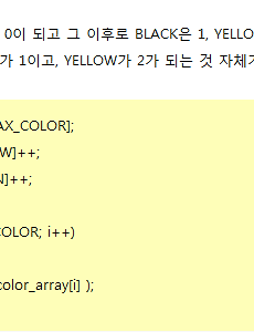 숫자로 작성된 상수를 효과적으로 대체하기 위해서 사용되는 방법에는 여러가지가 있습니다. const int value = 5; #define MAX_COUNT 10 그러나, 갯수가 많거나 숫자의 많고 적음보다는 구분하기 위한 인덱스 혹은 태그 정도의 의미로 사용할 때에는 enum을 더 많이 사용합니다. enum { WHITE, BLACK, YELLOW, BLUE, GREEN, MAX_COLOR, }; 이 경우에, WHITE는 0이 되고 그 이후로 BLACK은 1, YELLOW는 2가 되는 것처럼 1씩 자동으로 증가하게 됩니다. 이것은 BLACK가 1이고, YELLOW가 2가 되는 것 자체가 중요한 의미를 가지진 않습니다. int color_array[MAX_COLOR]; color_array[YELLOW]..